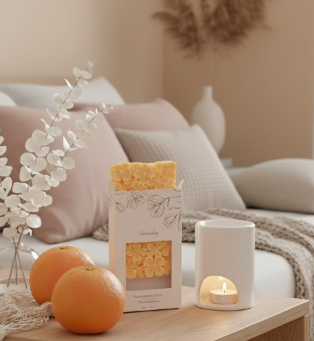 1- Disposer un petit morceau du fondant parfumé sur la partie supérieure du brûle parfum.